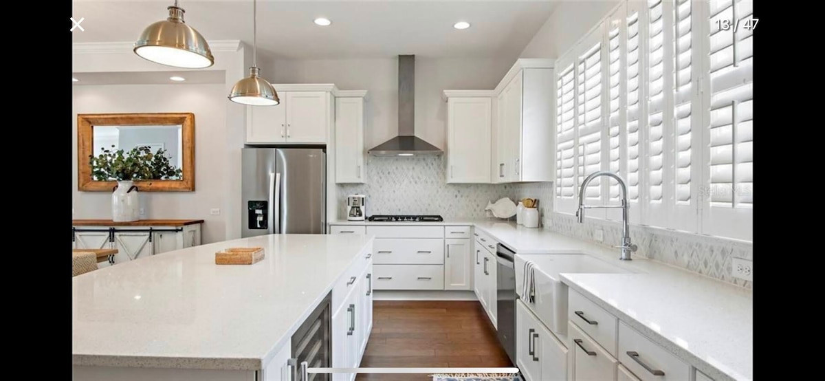 Mitt ställe ligger nära vita sandstränder och har en uppvärmd pool. Priset är fantastiskt och det är helt renoverat i det senaste modet med roliga strandiga accenter! Du kommer att älska mitt ställe på grund av läget, grannskapet och utrymmet utomhus. Mitt boende passar par, ensamma äventyrare, en förälder och ett barn. Jag har justerat mina priser så att de anpassas med hänsyn till att området återhämtar sig från orkanen Helene från förra året. Foton togs den 25 augusti 2025.