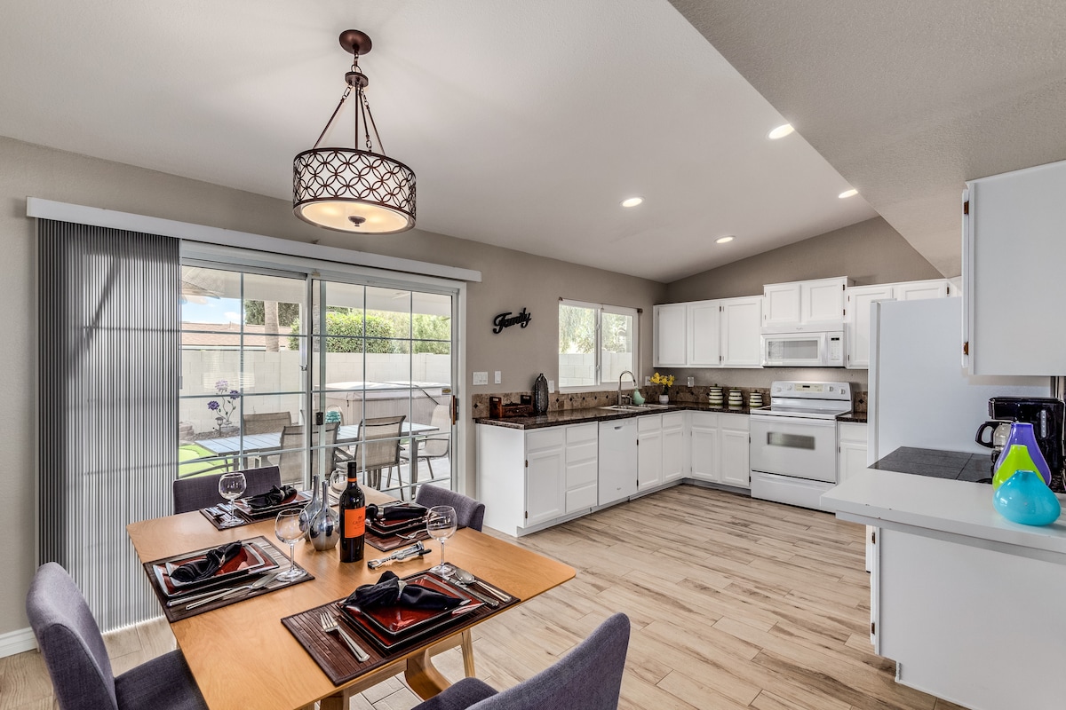 -- Höjdpunkter i ditt framtida hem-borta-från-hemmet-- ➳ Hopfällbar vägg i vardagsrummet för inomhus-utomhusboende ➳ Bara 5 minuter till hjärtat av Scottsdales restauranger, nattliv och konstgallerier ➳ Stor bakgård med uppvärmd pool och rymlig bubbelpool ➳ Oändligt uteplats med eldstad och uteplats Letar du efter något lite annorlunda? Jag har 8 fler topprankade boenden i Scottsdale, alla 5 minuter eller mindre från Old Town. Klicka på min värdprofil för att utforska!