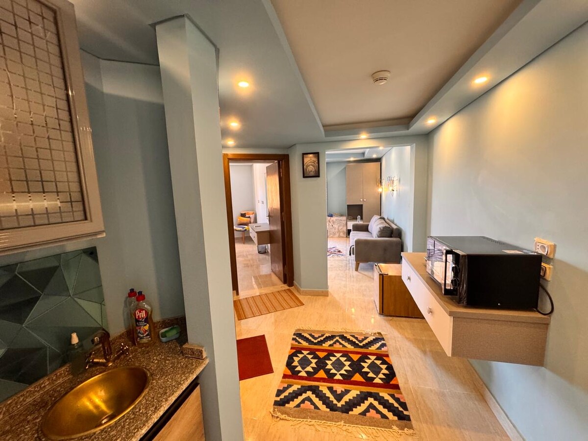 Välkommen till vår charmiga lägenhet mitt i Suez! Beläget på huvudgatan, bara några steg från Banks och Commercial Area hittar du dig omgiven av shopping, restauranger och viktiga tjänster. Detta mysiga boende är perfekt för både affärsresenärer och turister och erbjuder alla bekvämligheter du behöver för en avkopplande vistelse. Njut av moderna bekvämligheter, ett fullt utrustat kök och en fridfull atmosfär för att koppla av efter en dags utforskning.