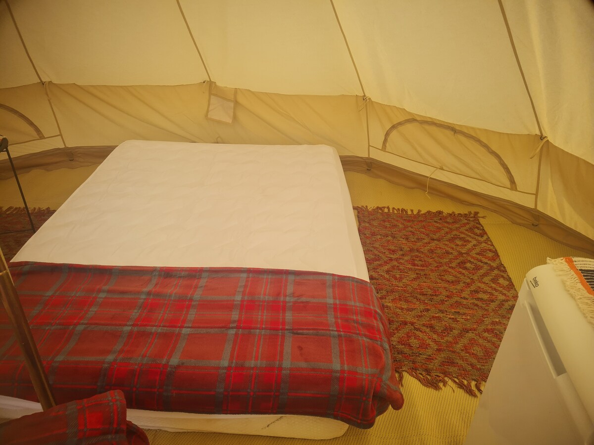 Vacker fantastisk Glamping. Jag driver platsen på egen hand och arbetar mycket hårt för att se till att du får en underbar vistelse. Klocktälten har noggrant utformats med riktiga sängar, lufttorkade bomullsplagg och elegant inredning. Tältet rymmer upp till 4 personer. En "riktig" dubbelsäng och två luftsängar med täcken och sängkläder tillhandahålls. Beläget i hjärtat av landsbygden i den pittoreska byn Norland, platsen är underbart, fridfullt, fullt utrustad du behöver bara din handduk och övernattningsväska!!