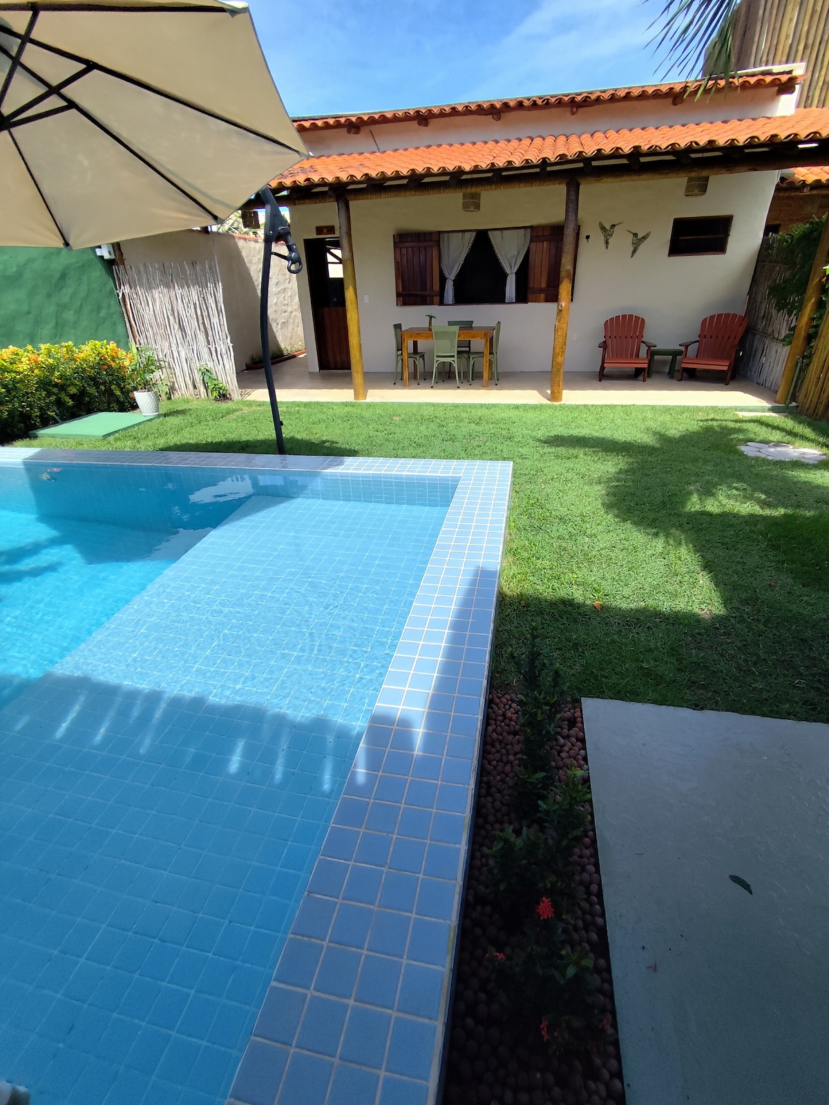 Beläget i en stängd ägarlägenhet - MIRAKEL som står I AREIA - HUS AV CHARM . Total säkerhet och lugn . Lyxig bungalow med egen pool. Perfekt för smekmånad eller för dem som vill ha god smak och avskildhet . Ligger vid havet i Praia do Toque som är den bästa stranden i São Miguel dos Milagres. Granne till underbara restauranger. Jangadeiro fångar dem framför huset för att ta dig på fantastiska promenader till de naturliga poolerna i regionen . Vi erbjuder frukost