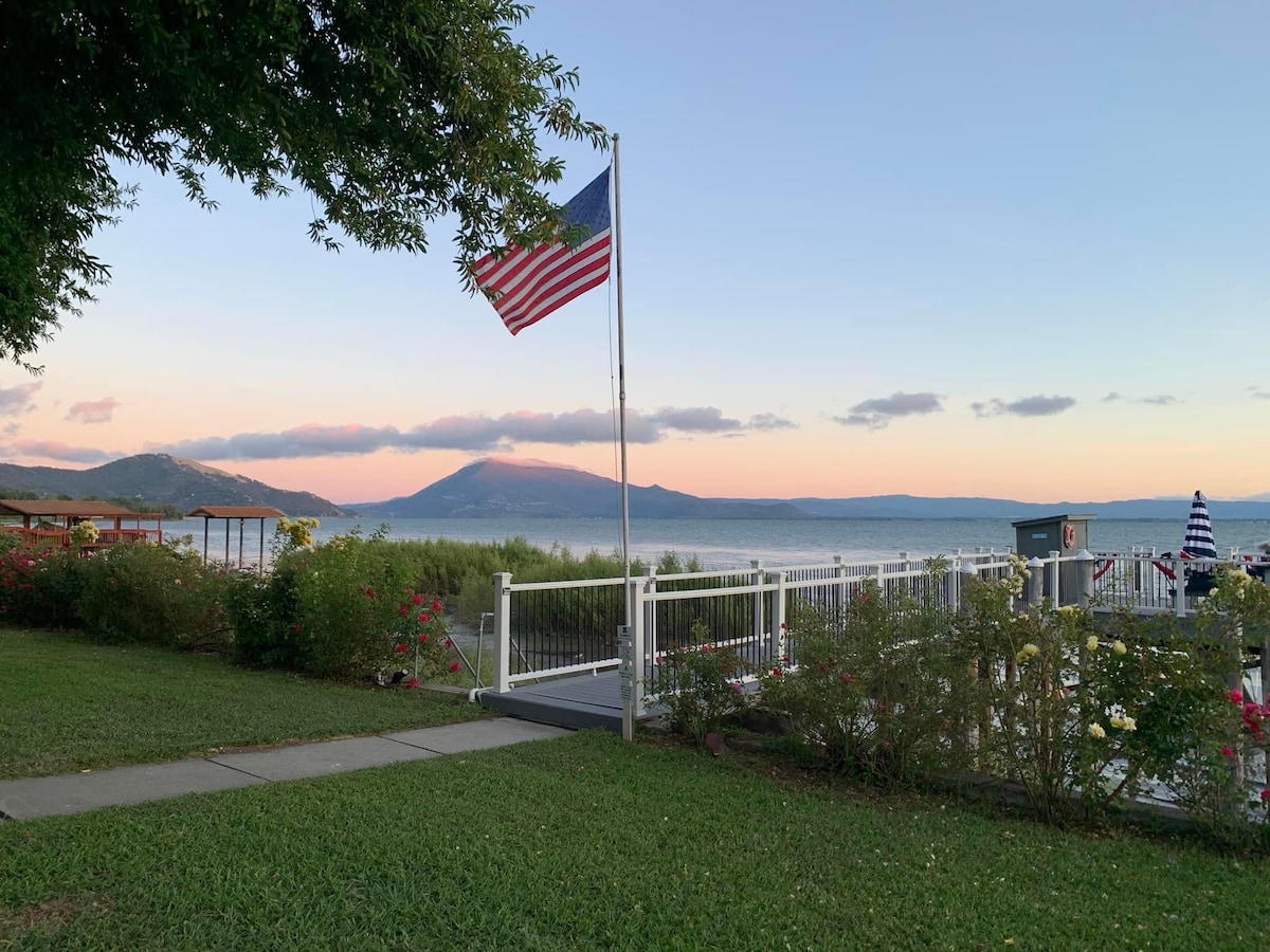 Koppla av med hela familjen på detta fridfulla ställe nära sjön. Gör det till en mysig vistelse med middag på uteplatsen med utsikt över sjön och bergen. Helt inhägnad och avgränsad cirkulär uppfart med tillräckligt med plats för flera fordon och båtar. Två minuter från sjösättningsplatsen för båtar och den berömda semesterorten Konocti Harbor. En kort bilresa till restauranger och vinprovning. Njut av grillen och corn hole-spelet. Höghastighets-Wi-Fi. Ägaren har ett andra Airbnb-boende tillgängligt ett kvarter bort för vänner och familj.