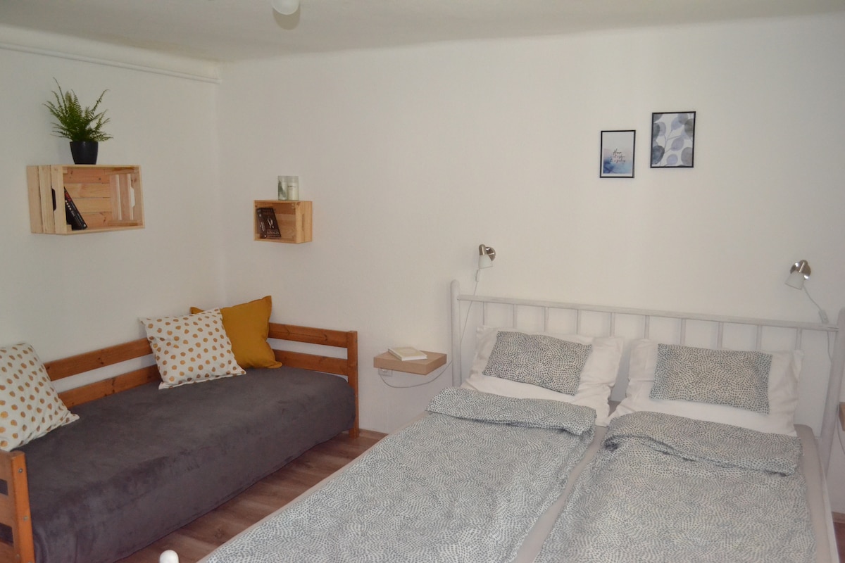 Modern lägenhet på övervåningen, gästfrihet på nedervåningen