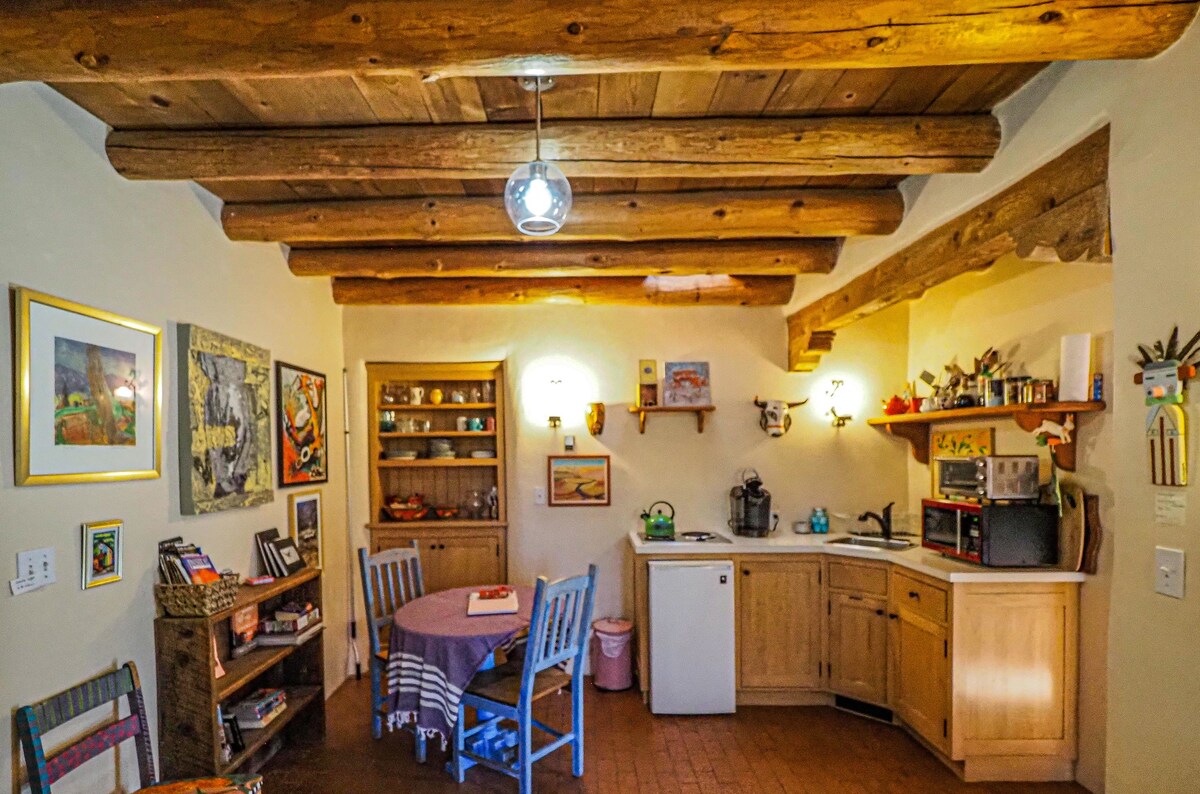Familjen Casita är gästflygeln till ett familjehem med egen separat ingång. Detta är en stor elegant adobe med tjocka väggar som håller det sval på sommaren och ger gammaldags charm. Ett mycket rymligt 900 kvadratmeter studioutrymme, det har två ursprungliga eldstäder, en i matköket, och en i huvudrummet. Det finns en vacker handmålad king size-säng och en Euro Lounger (som omvandlas till en dubbelsäng), separerad med en avskildhetsvägg. Hundar är välkomna. Tyvärr kan de inte ta emot katter.