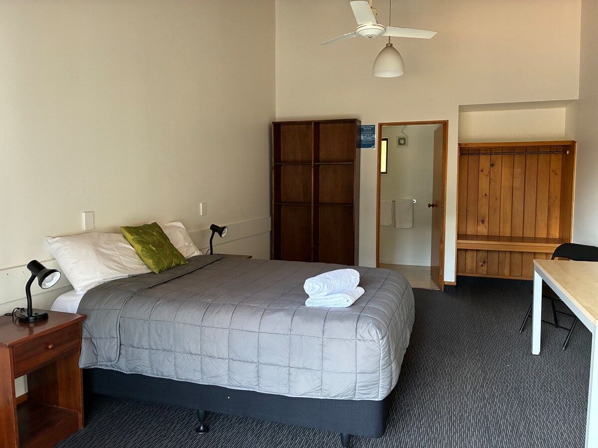 The Queen Rooms feature a queen sized bed and a private ensuite bathroom. You will also have access to the lodges shared facilities: Covered outdoor BBQ and seating area Well-equipped kitchen with fridge/freezer Lounge with couches and Sky TV Access to laundry facilities (for a fee) Free parking is available on site and on the street as well. Travel cot available free of charge. Small kiwi family run business :)