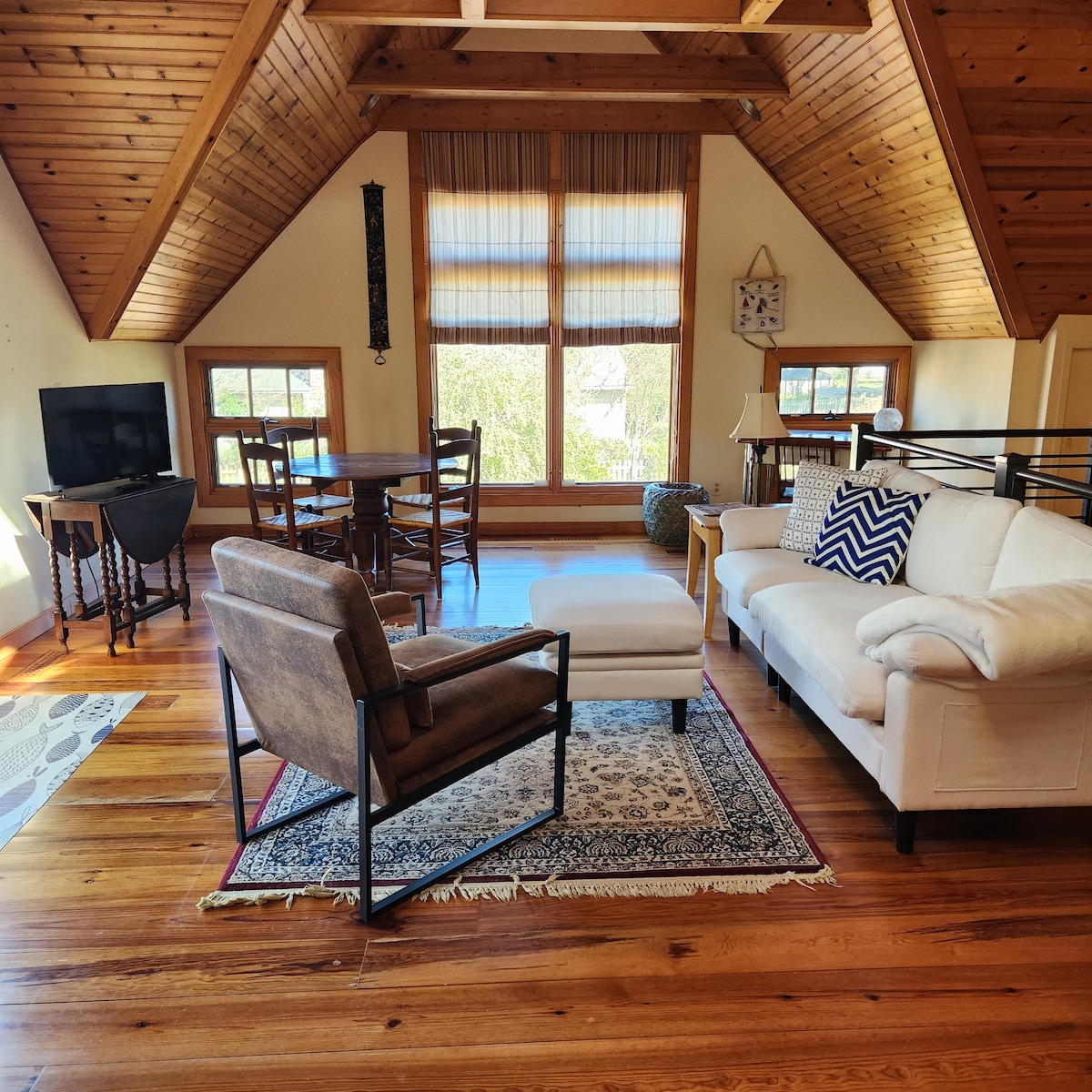 Vill du komma bort från allt, ändra din omgivning och ladda om dig själv mentalt och fysiskt? Välkommen till Peaceful Haven. Butiker och restauranger i den härliga historiska byn Irvington ligger bara ett par minuter bort. Vandra precis utanför din dörr eller i närliggande parker, cykla runt ängarna eller till stan, hänga utomhus och lyssna på fåglarna, eller bara sjunka ner i den bekväma soffan för att njuta av en film på vår stora TV-skärm.