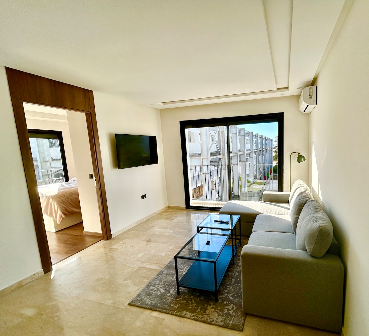 Modern 1-rumslägenhet med separat vardagsrum i Nouaceur, perfekt för affärsresor och kortare vistelser. 5–10 minuter från CMN flygplats, MIDPARC/Aeropole och nära Sapino industriområde. 100 Mbit/s fiber-WiFi, dedikerad arbetsyta och självständig incheckning dygnet runt med smart lås. Fullt utrustat kök (ugn, mikrovågsugn, tvättmaskin, Dolce Gusto). Privat balkong med öppen utsikt och flygplansspotting. Säker bostad, säsongsöppen pool (apr–okt), gratis parkering på gatan.