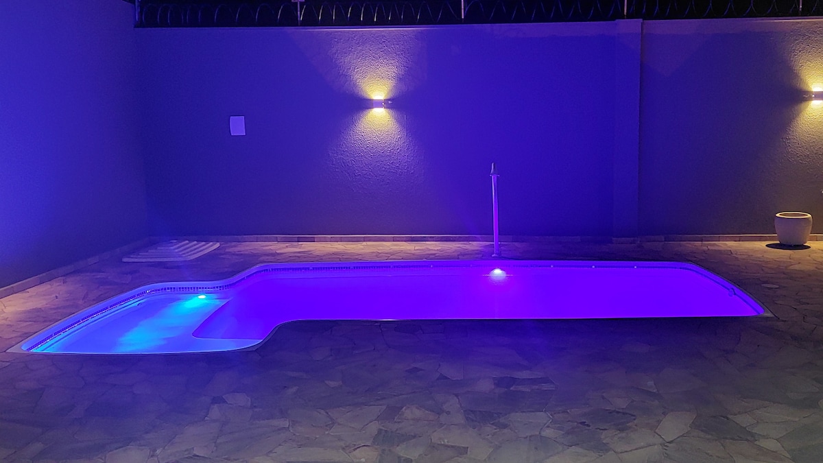 Fläckfri ranch, bekväm och rymlig för dig att njuta av och ha den grillen för helgen med er familj och vänner! Simbassäng med vattenfall och hydromassage, gourmetutrymme komplett med spishäll spis, socker, inverter kylskåp, bryggeri, grill, mikrovågsugn, elektrisk frys, mixer, redskap, SmartTV 55 tum, Wi-Fi-bord med 8 platser, ö med 6 pallar, 2 träbord med 4 stolar vardera, 1 dubbelsäng, 1 våningssäng och 1 garderob.