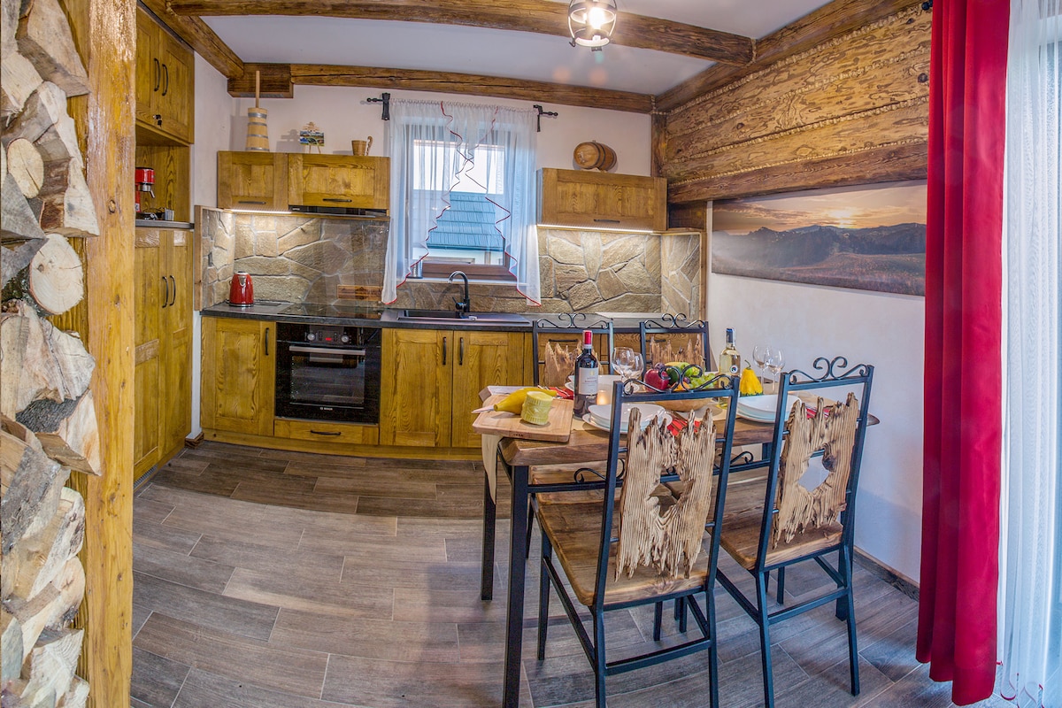 Luta dig tillbaka och koppla av i detta lugna, eleganta boende. Sitt på en veranda och ta ett djupt andetag med en kopp färskt kaffe som gjorts i lägenheten. Lyssna på fåglar, begrunda utsikten över hela Tatrabergen panorama. Eller ligga på ett trägolv direkt vid en öppen spis. På vintern kan du nå skidbackarna redan på dina skidor; på sommaren börjar promenad- och vandringsleder i skogen strax bakom lägenheten.