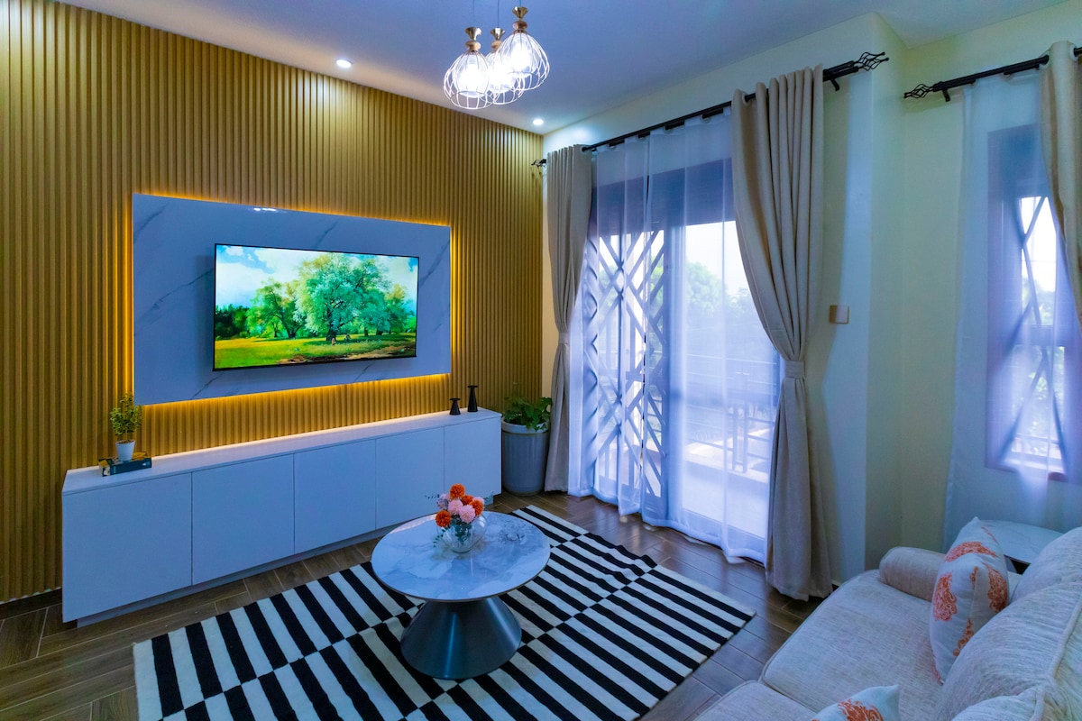 Lyxig, rymlig, fullt möblerad 2-rumslägenhet i Kisasi Kikaya, Kampala för dig själv!Renlighet är högsta prioritet, alla sängkläder och handdukar är vita och lägenheten städas dagligen utan extra kostnad!Beläget bara några steg från Bahai-templet, och bara 5 km från Acacia Mall. 3 balkonger för att njuta av utsikten. Kök fullt utrustat med moderna apparater. Smart 55 tums TV! Frodiga gröna trädgårdar utanför och en pergola perfekt för att skapa minnen. Blommorna valdes med kärlek!