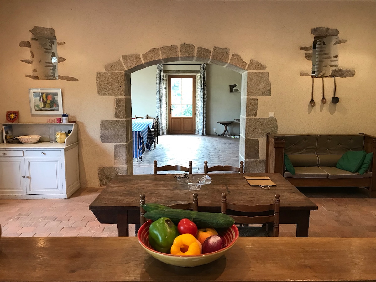 Välkommen till vår charmiga renoverade bondgård från 1850 – Maison La Roulière! -*-INGÅR: Sängkläder, 2 handdukar per person, schampo, duschtvål, basutrustning för köket -*-Hus: 170 m2 (Vardagsrum: 80 m2, stort 4 m långt bord). -*-Tomt: 2 500 m² (grill, petanque-bana, lekar för barn, gunga, solstolar, hängmatta) -*- Lugnt, inga grannar, utsikt över trädgården och skogen för en bekväm och avkopplande vistelse med familj eller vänner!