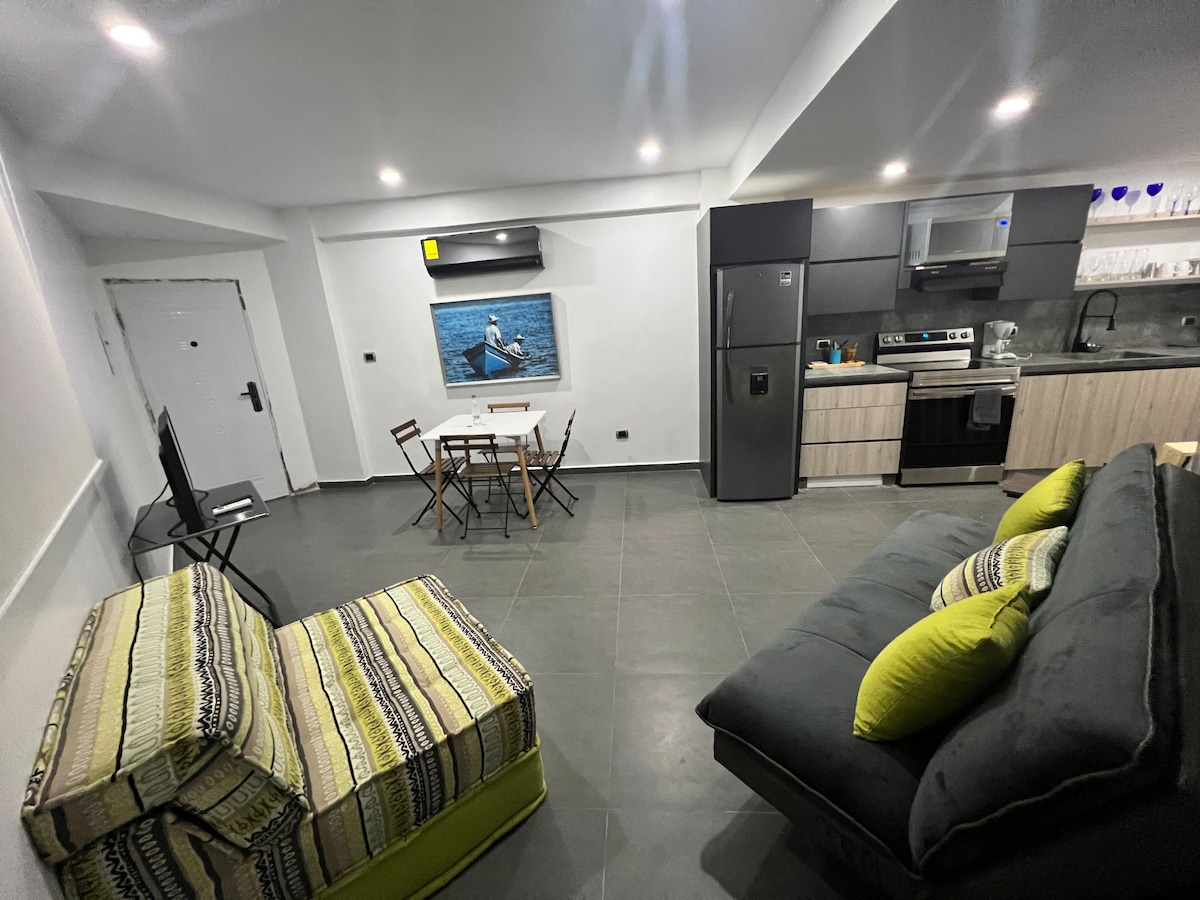Mitt mål är att du ska ha en bekväm, säker vistelse med värmen av att känna dig som hemma. Bekväm lägenhet med strategiskt läge. Några minuter från La Vela Shopping Center, stormarknader, stränder, restaurang och nattliv. Det har ett sovrum, 2 badrum, en nedre säng i queen-storlek och en bäddsoffa i queen-storlek. Perfekt utrymme för familjer eller vänner, med TV, obegränsat WIFI, utrustat kök, privat parkering, 4:e våningen, hiss och vattentank. Ditt hem på ön.