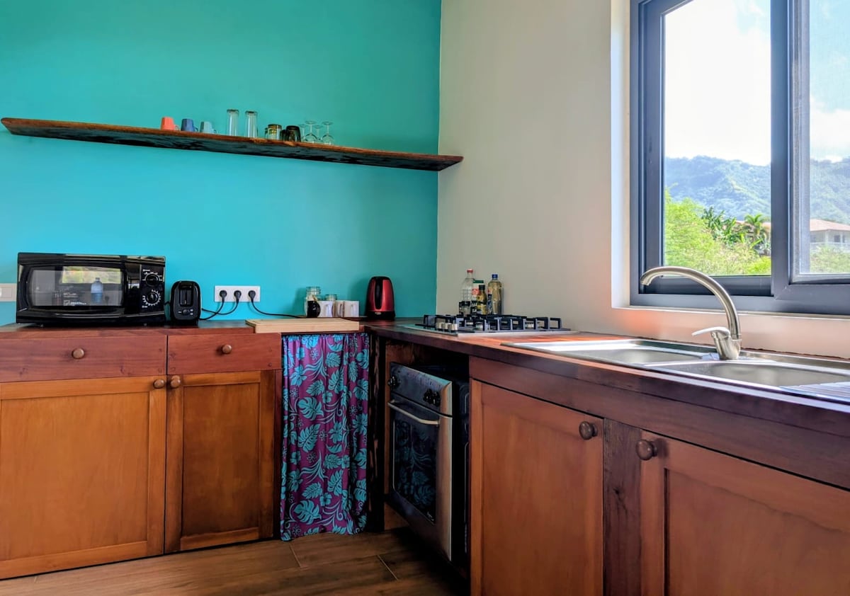 Vårt boende ligger på bottenvåningen i vårt hus, i centrum av byn, nära alla bekvämligheter. Närområdet är lugnt. Lägenheten har 2 sovrum (det första är luftkonditionerat). Vi hoppas att du kommer att njuta av din vistelse i Nuku Hiva.