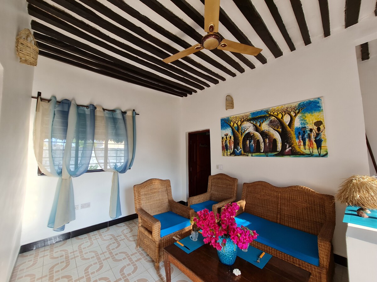 Fastigheten är en del av en liten bostad med trädgård, gratis inomhusparkering. Den närmaste stranden är 7 minuter bort (bredvid Riu Jumbo). Mycket nära finns en liten marknad (jumbo marknad) och 5 minuters promenad till en stormarknad. Det är ett mycket lugnt område. Avståndet från Nungwi är 1 km från Kendwa 1,6 km.