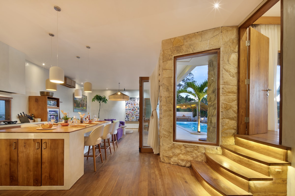Denna rymliga villa ligger i hjärtat av Lembongan Island och är modellerad över ett 50 år gammalt indonesiskt traditionellt trähus. Villa har ett vardagsrum i det fria, stor säng, luftkonditionering, takfläkt, platt-TV med internet, säkerhetsbox, badrum i det fria med badkar, välutrustat kök och kylskåp. Gäster kan koppla av i cabana, gunga eller bada i den privata poolen i villan.