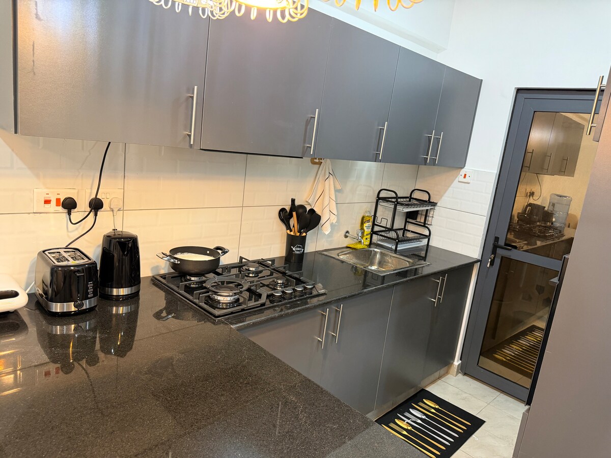 Välkommen till Vale Residence – en modern lägenhet med 1 sovrum i hjärtat av Nyali, Mombasa. Bara 5 minuter från stranden, det är perfekt för strandälskare, familjer, vänner eller distansarbetare. Njut av luftkonditionering och fläktar i varje rum, snabbt Wi-Fi, ett fullt utrustat kök och säker parkering. Gå till de bästa restaurangerna, galleriorna och nattlivet. Din perfekta kustresa väntar! OBS: Lägenheten har ingen hiss och kunden ska fylla på elpolletter när han eller hon använder dem.