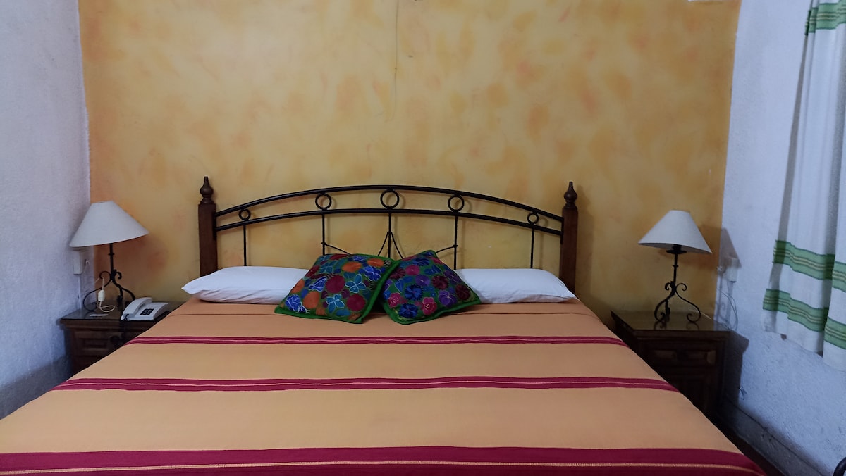Bekvämt och tyst rum med queen-säng i centrala Oaxaca, bara några kvarter från Santo Domingo Temple. Det har Wi-Fi, ett privat badrum och A/C så att du kan njuta av din vistelse fullt ut.
