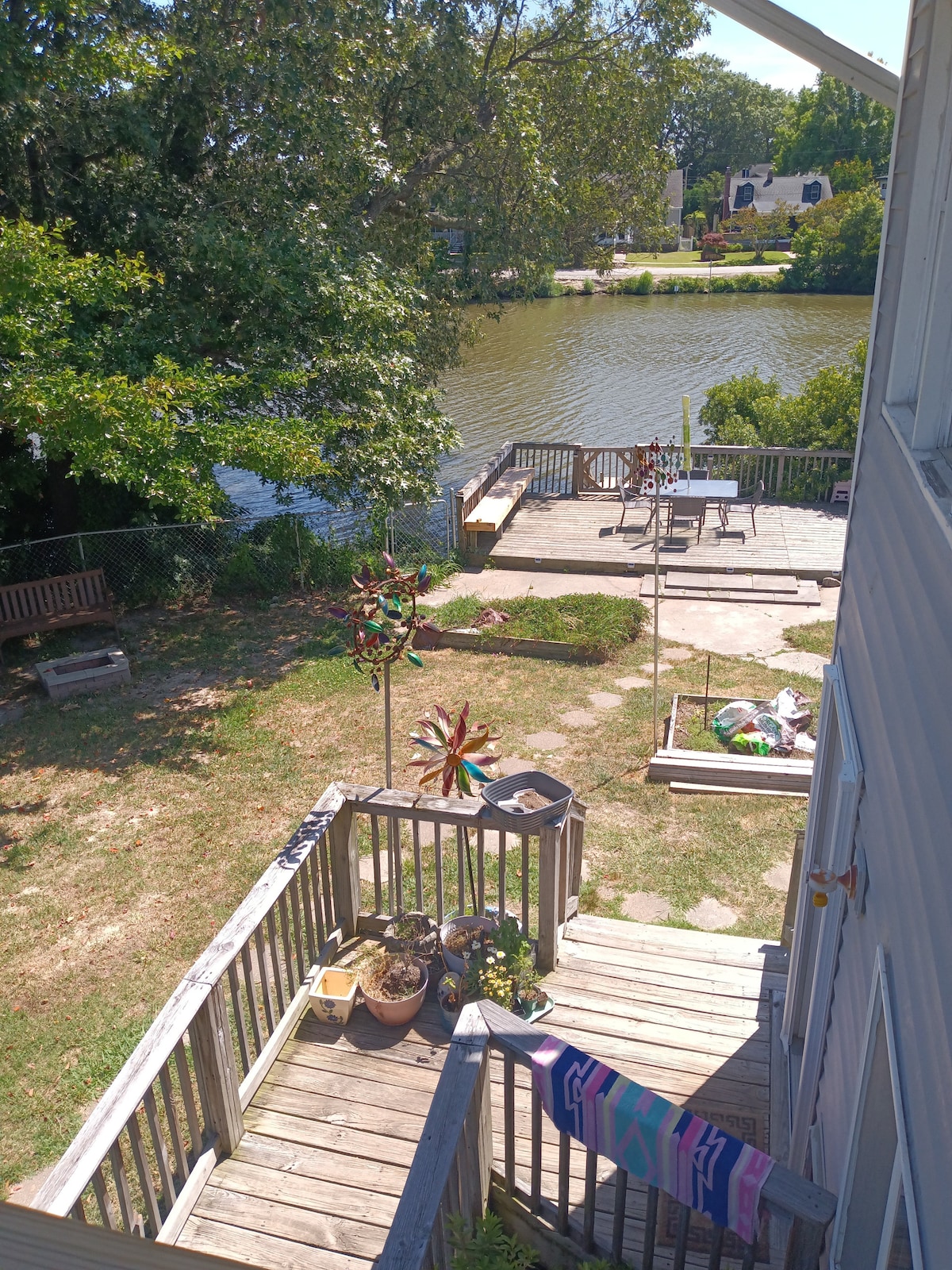 Nyrenoverad, superren lägenhet med ett sovrum (in-law), ca. 375 sf. Tre kvarter från stranden 7-10 minuters promenad. Täckt däck, bakgård på vatten för att titta på ankor, hägrar, fisk. Betongbänkar och eldstad nära vattnet. Gångavstånd till havet, strandpromenaden, Rudee Inlet, restauranger och underhållning. Trägolv, dubbelsäng, "pack n play", kokvrå med handfat, kylskåp, mikro, Keurig kaffebryggare, brödrost (ingen ugn eller spis) 1 gig mbps Wifi, internet-TV. Futon-liknande soffa.