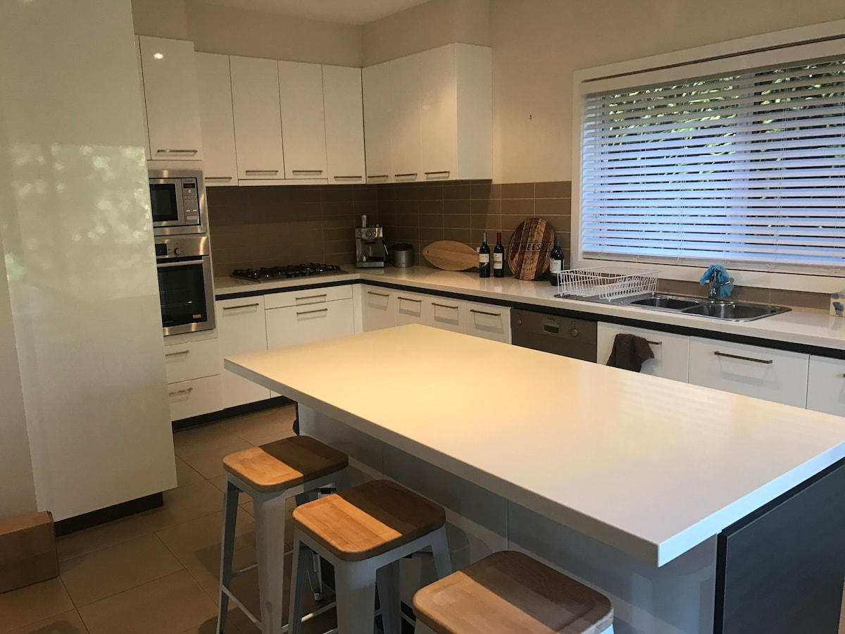 Kustnära tillflyktsort för par och familjer; promenad till stränder och inlopp för sommarstrand och vattenaktiviteter. Stor TV och gas-log brand för vinterresa! Ocean Grove är en fantastisk stad på Bellarine med fantastiska stränder för surfing och bad och ett inloppskär som är bra för barn. Vi har trendiga kaféer, en närliggande stormarknad (öppen sent), butiker, restauranger och idrottsanläggningar (golfbana, inomhusbad, bowling, etc.)