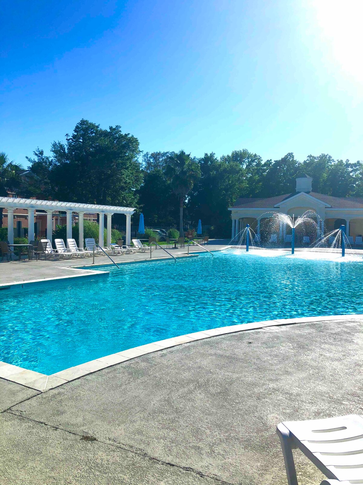 Kom och "stanna ett tag" i min vackert uppdaterade lägenhet. Jag ligger tvärs över gatan från vackra Biloxi Beach. Jag är centralt belägen inom några minuter från flera 5-stjärniga kasinon, inklusive Beau Rivage och Hard Rock. Underhållnings- och matställena är oändliga. Efter en hektisk dag kan du återvända för att njuta av de 2 vackert uppdaterade poolerna på fastigheten och laga en läcker måltid i mitt fullt utrustade kök. Du kommer att älska att besöka Biloxi lika mycket som jag älskar att bo här!