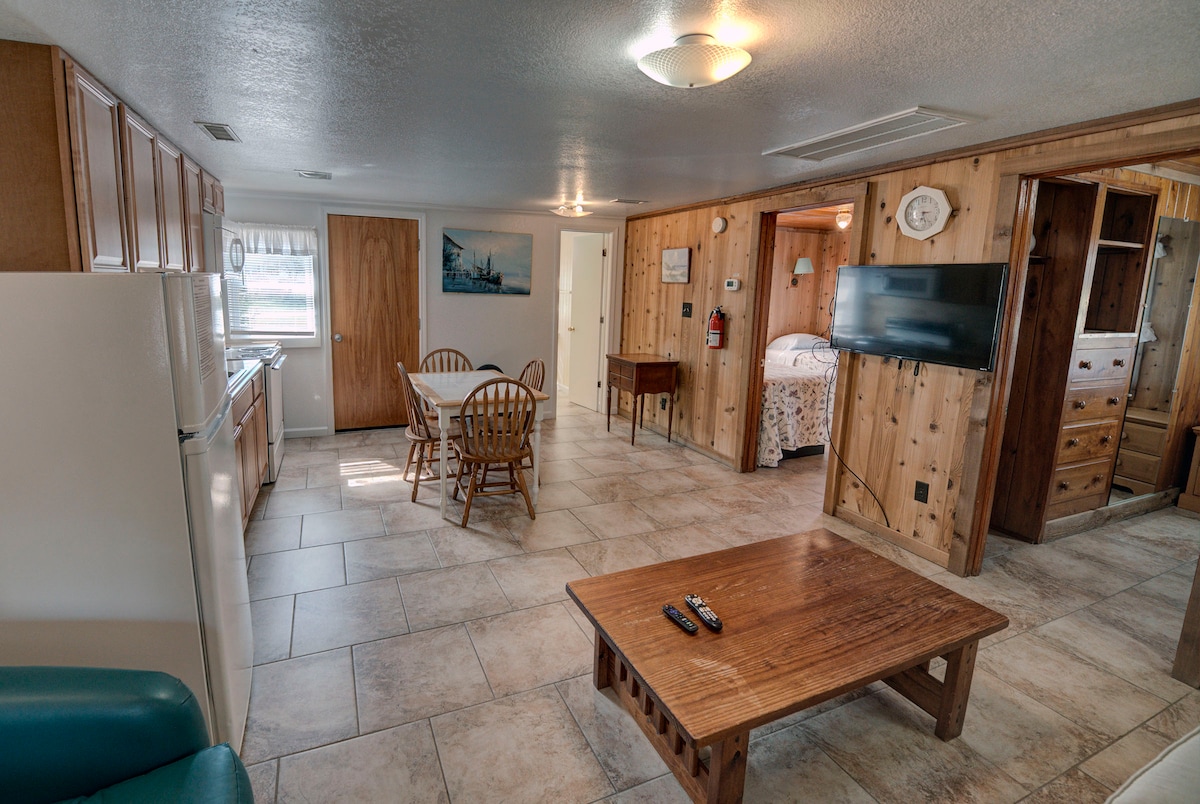 Fly till SheCaptain'sCottage, en charmig tillflyktsort med två sovrum på Ocracoke Island med en inhägnad gård som är perfekt för dina valpar, en avskärmad veranda och en luftig altan på baksidan. Perfekt för par eller små familjer, med ett drömlikt sovrum med dubbelsäng och ett mysigt rum med en mindre dubbelsäng. Det soliga vardagsrummet öppnar till en veranda där cederträd svajar och fåglar sjunger serenader under din vistelse. Laga minnen vid havet i pentryt och varva ner under stjärnorna. Med höghastighets-WiFi och marin inredning fångar denna tillflyktsort öns magi.