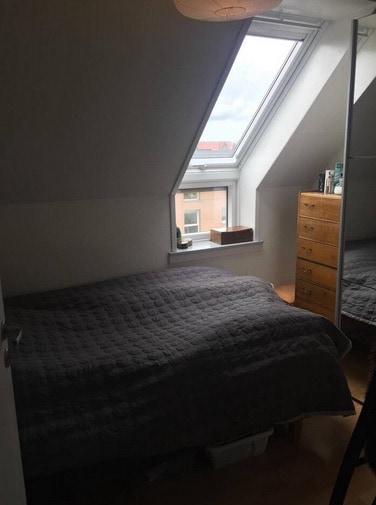 I hjärtat av Odense hittar du vår 120 år gamla murade villa. På översta våningen finns en lägenhet med sovrum, vardagsrum, kök och badrum med ett stort badkar. Lägenheten har direkt tillgång till en 50 kvadratmeter stor takterrass med utsikt mot den vackra Assistens kyrkogården och parken. Vi är en familj på 5 personer som bor på bottenvåningen. Våra barn är 3, 6 och 10. Det finns tillgång till vår trädgård och studsmatta, som du kommer att dela med oss.