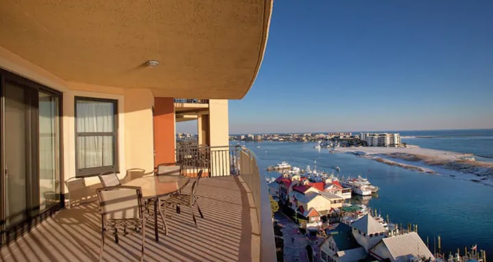 3 bed, 3 full baths in the heart of Harbor Walk. Overlooking the beautiful Destin gulf on the Huge corner balcony. This unit not only overlooks the beautiful Harbor Walk but also the pool and hot tub area and enjoy the views of the world known crab island. Walk to any bar or restaurant in Harbor Walk and also across the street the the famous McGuires Irish Restaurant. Just steps away from kids activities, boat rentals, sunset cruises, dolphin cruises, etc. Anything you need is just steps away.