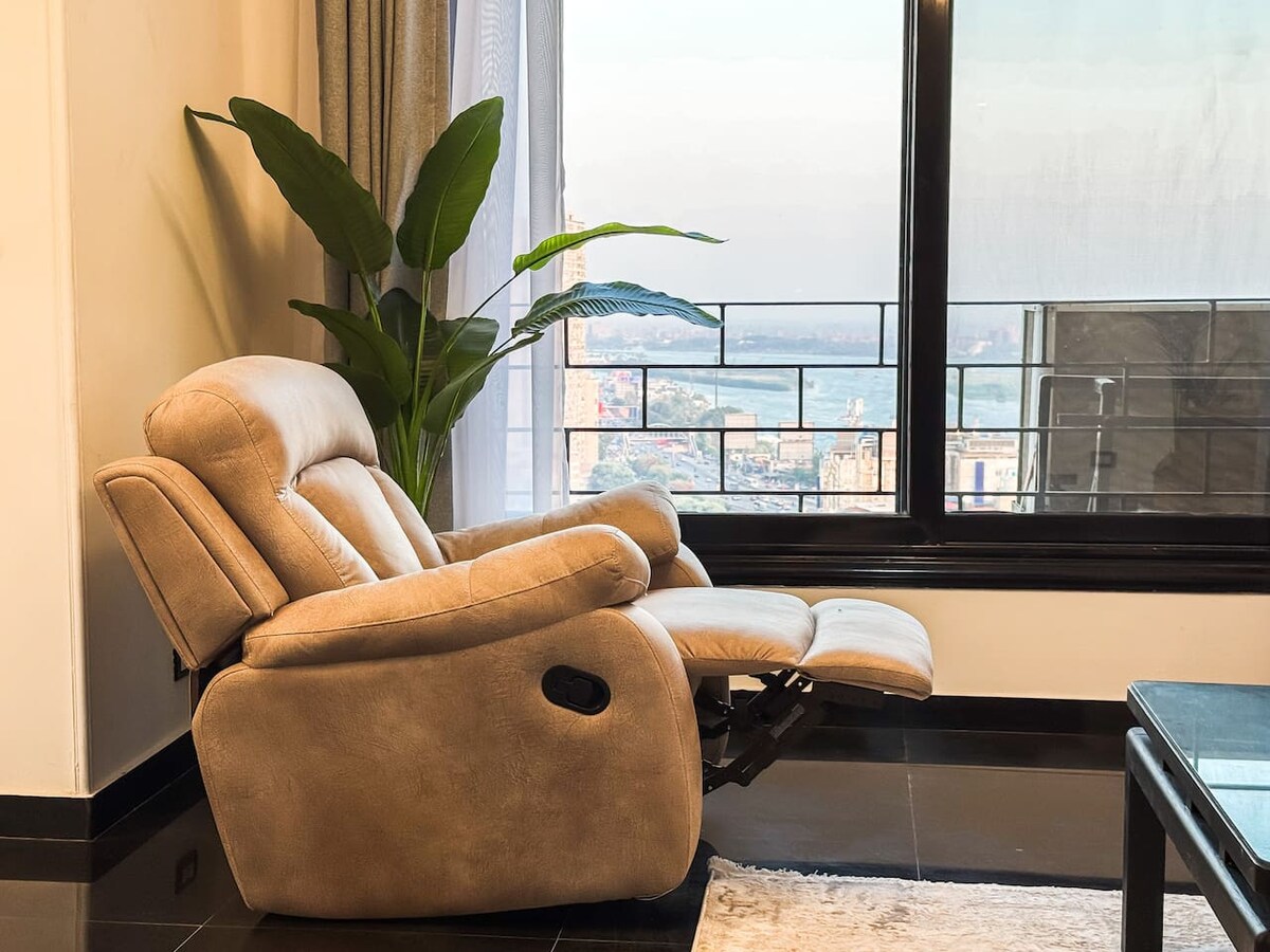 Welcome to Your serenity Stunning Nile Views Wake up to panoramic views of the Nile River, where the sunrise paints the sky in vibrant hues. Enjoy your morning coffee on the balcony as you watch the boats glide by *Spacious & Stylish Interiors* Our apartment is designed with your comfort in mind. Prime Location #Amenities for Every Need fully equipped kitchen or enjoying a movie night with our smart TV, we have everything you need for a comfortable stay. We can’t wait to welcome you!
