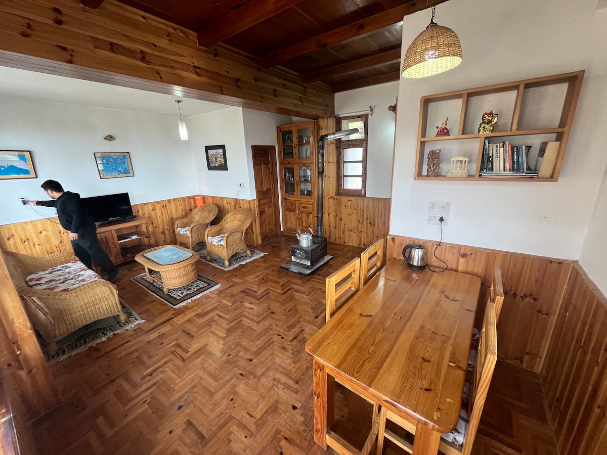 Har du någonsin drömt om att ha din egen personliga bostad i bergen? Cliffer Cottage är så nära som möjligt att leva den drömmen så länge du vill. Denna stuga med 3 sovrum är laddad med bekvämligheter och är omgiven av äppelodlingar, med utsikt över Manali och dess majestätiska berg. Från sommargröna till vintervita, den glittrande utsikten lämnar dig bara med önskan om mer. Slappa runt trädgården eller utforska stigar i närheten; hitta dina egna skäl att göra bergen minnesvärda!
