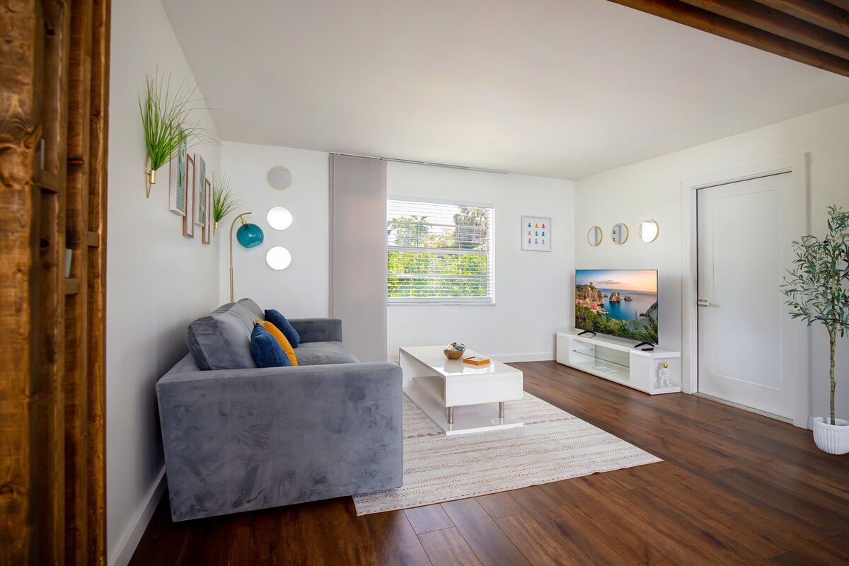 Ditt romantiska gömställe vid sjön i Bayshore Arts District! Vakna upp till glittrande vattenutsikt, koppla av på det rymliga däcket och njut av gratis kajaker direkt från dörren. Minuter från centrala Neapel, piren och botaniska trädgården; Gulfstränderna ligger bara 3,5 miles bort. Detta privata badrum med en king size-säng är perfekt för par eller ensamresenärer som älskar natur, konst och bra mat. Jag bor på plats och ser fram emot att välkomna dig till denna fridfulla, lättsamma tillflyktsort. Boka idag!