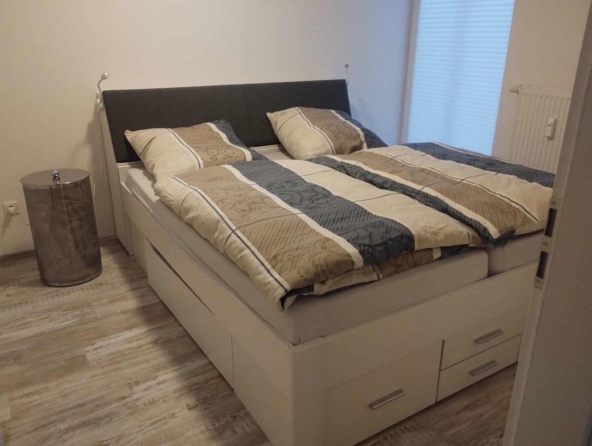 Vår slutna 2-rumslägenhet ligger i ett välskött flerfamiljshus i slutet av en lekväg i ett mycket lugnt område. Tågstationen ligger 3,5 km bort, universitetet bara 1,8 km bort. Lägenheten har en stor balkong och ett fullt utrustat kök. Kom och må bra. Vi ser fram emot ditt besök.