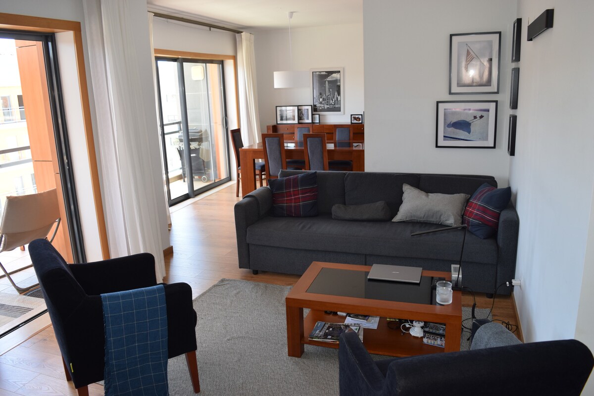 Fantastisk lägenhet vid stranden i Quarteira några steg från stranden! Njut av denna rymliga och tysta lägenhet. Från denna underbara balkong kan du njuta av frukost eller middag vid solnedgången medan du lyssnar på de avkopplande ljuden från havet. Så snart du kommer in i lägenheten är det ganska synligt att du bor precis vid stranden. Utsikten över havet träffar dig så snart du öppnar vardagsrumsdörren till balkongen och det naturliga solljuset från de många fönstren gör behovet av konstgjort ljus minimalt.