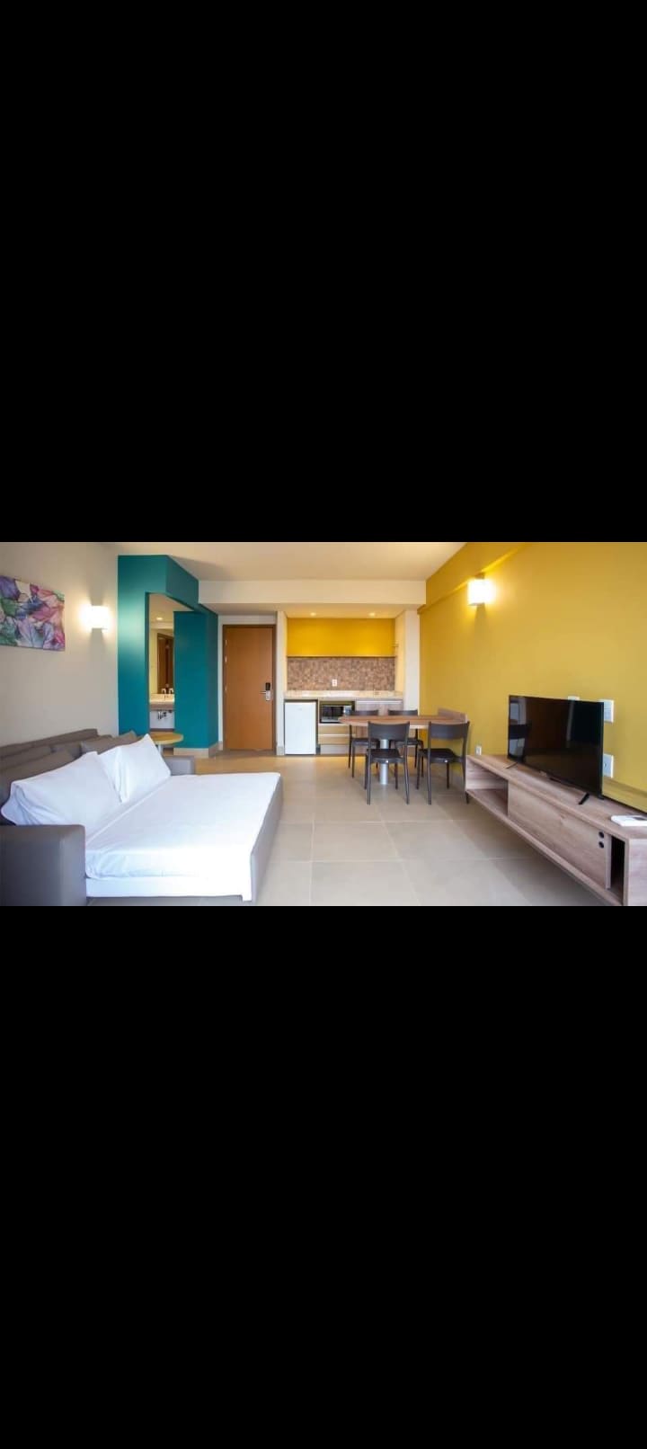 Lägenhet bredvid Thermas dos Laranjais i Olímpia med kök Vardagsrum med öppen planlösning och öppet kök, sovrum med dubbelsäng, enkelsäng, extrasäng och bäddsoffa i vardagsrummet. utmärkt för hela familjen, hotellservice, uppvärmda pooler, klimatiserade pooler och kall pool med bar. bastur, vattenpark, spelrum, lekrum, minigolf, multisportplan, cirkusaktiviteter, beach tennis, restauranger, barer, instruktörer, transfer till termalbad