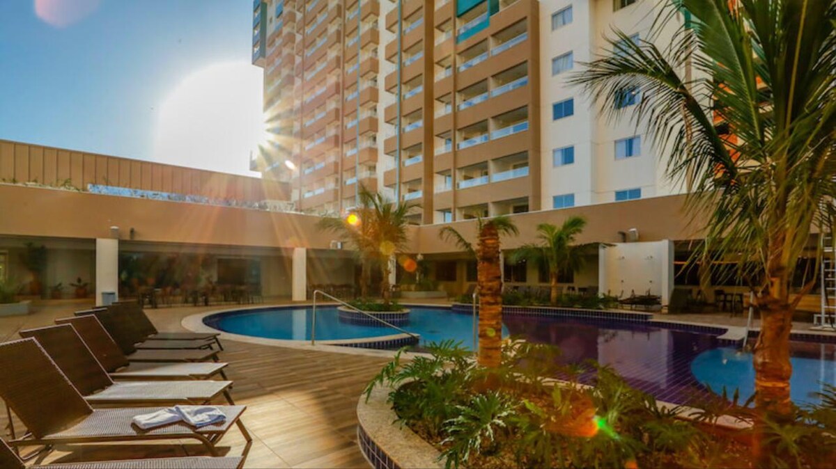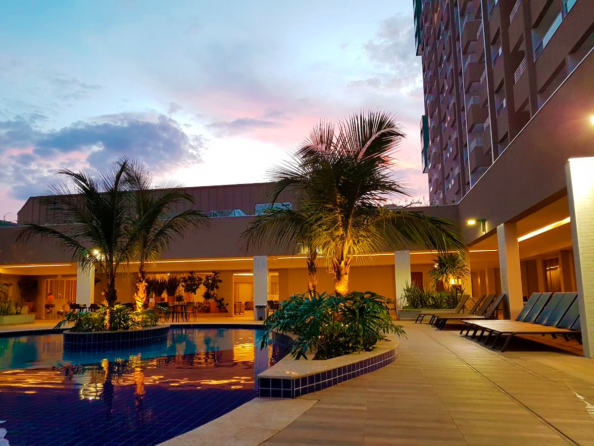 Ny lägenhet med wi-fi Luftkonditionering, kylskåp, mikrovågsugn, elektrisk spis, tv Säng, bäddsoffa, badrum Mysig atmosfär Parkeringsplats Elektronisk grind med kontroll Uppvärmd pool i bostadsrättsföreningen 10 minuter från Termas dos Laranjais och Hot Beach