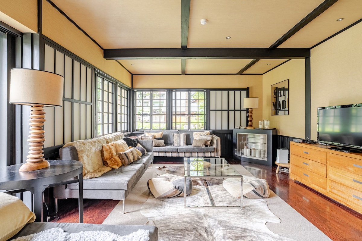 駅近5分|暖炉とシアタールームのあるグループ向け宿|スキー場徒歩圏|最大10名|