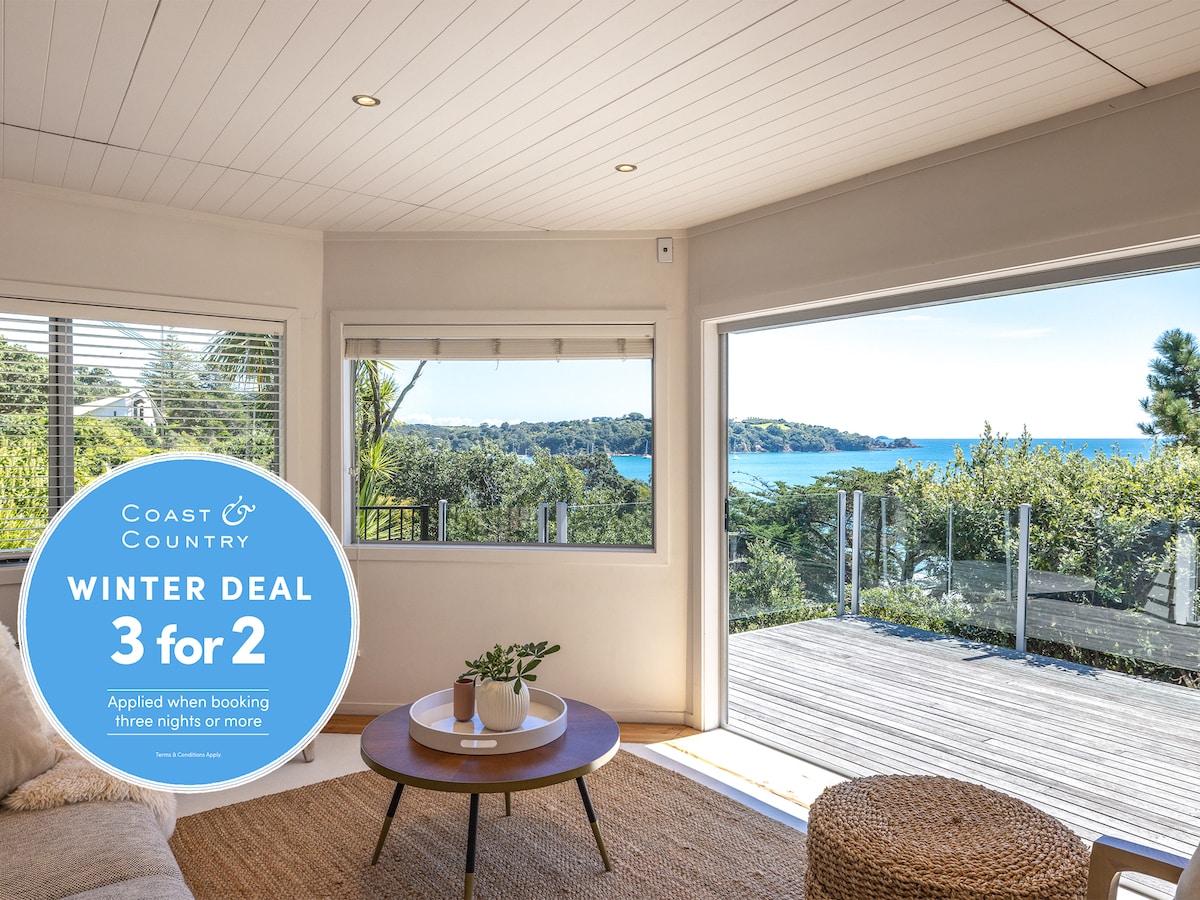 ** WINTER DEAL - Stay 3 or more nights and get a night free for stays taken between 1 May and 30 September 2026 (excluding holiday weekends)** Located on the uphill side of Little Oneroa, this private north facing, beach bach makes for super easy living and is a perfect Island escape. Spilling out onto a sunny north-facing deck, open plan living opens to lovely sea views across the Bay.