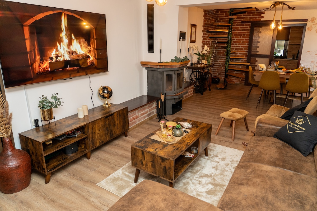 *ODRŽAVANJE ZABAVA I PROSLAVA NIJE DOZVOLJENO* *BAZEN JE U FUNKCIJI DO KRAJA RUJNA* *ELEKTRIČNI BICIKLI UKLJUČENI U CIJENU* Daleko od gradske vreve, obgrljena pejzažem Podravine u mjestu Borovljani, 10 minuta od Koprivnice i 15 minuta od Đurđevca nalazi se kuća "Kraljeva kruna" koja otvara svoja vrata svima koji se žele opustiti, zabaviti ili ispuniti mirom uz buđenje cvrkuta ptica.