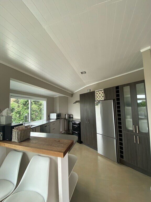 Detta vackra boende med havsutsikt ligger ett par minuters promenad till Kuaotunu Beach och Luke's Kitchen, en välkänd lokal restaurang. Huset ligger inbäddat på 4,5 hektar fantastiska trädgårdar och inhemsk buske. Huset består av en bostad med 4 sovrum på bottenvåningen med ytterligare 2 sovrum och ett extra badrum/toalett på övervåningen. "Kahukura" har gott om parkering för båtar. Båtrampen ligger 1 kilometer bort.