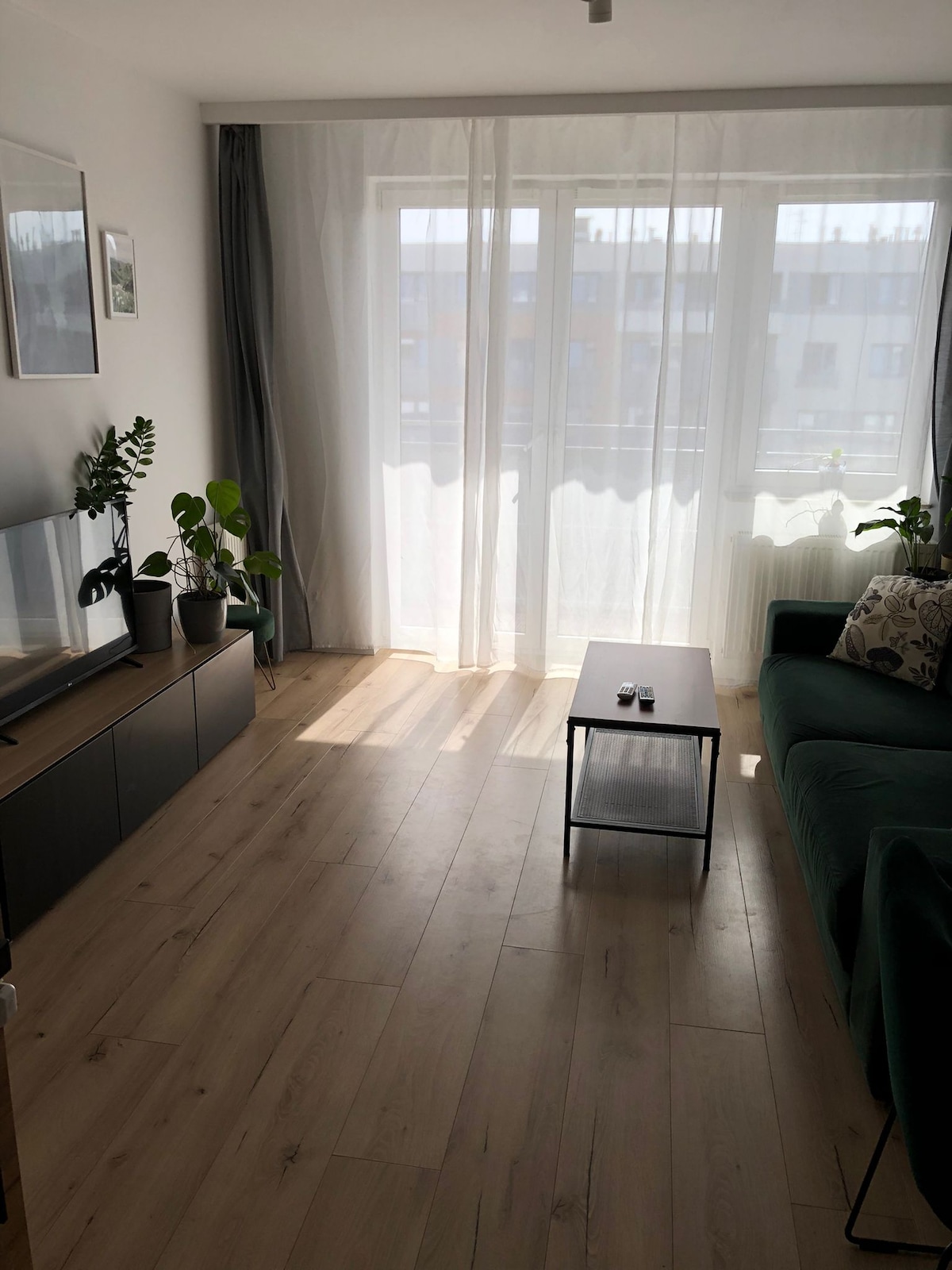 En lägenhet i centrum för upp till 3 personer bestående av ett bekvämt sovrum, ett fullt utrustat kök, ett modernt badrum och ett mysigt vardagsrum där du kan koppla av efter en händelserik dag. Det finns en parkeringsplats i garagelobbyn. Inga extra städavgifter eller parkering. Stora fönster erbjuder fantastisk utsikt över fontänen, trädgården och lekplatsen, och luftkonditionering garanterar en trevlig svalka på varma dagar. Marknadstorget ligger 3 spårvagnshållplatser eller 15 minuters promenad bort.