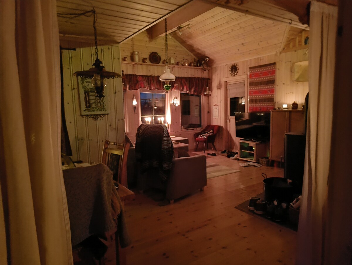 Charmig stuga med bergsutsikt nära Vangslia