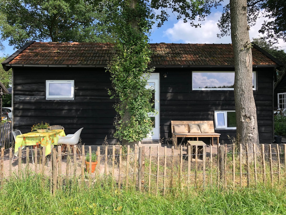 Het gastenverblijf staat achter ons huis, heeft een zwemvijver, sauna en binnen en buiten een openhaard. Er is één slaapkamer met een tweepersoons boxspring en eenpersoons bed. Er kan nog een eenpersoons bed bijgeplaatst worden. Er kan gebruik worden gemaakt van sauna en zwemvijver. Er is een combimagnetron. Tevens is er Wifi. Het gastenverblijf staat nabij het bos en heeft vrij uitzicht over weiland.