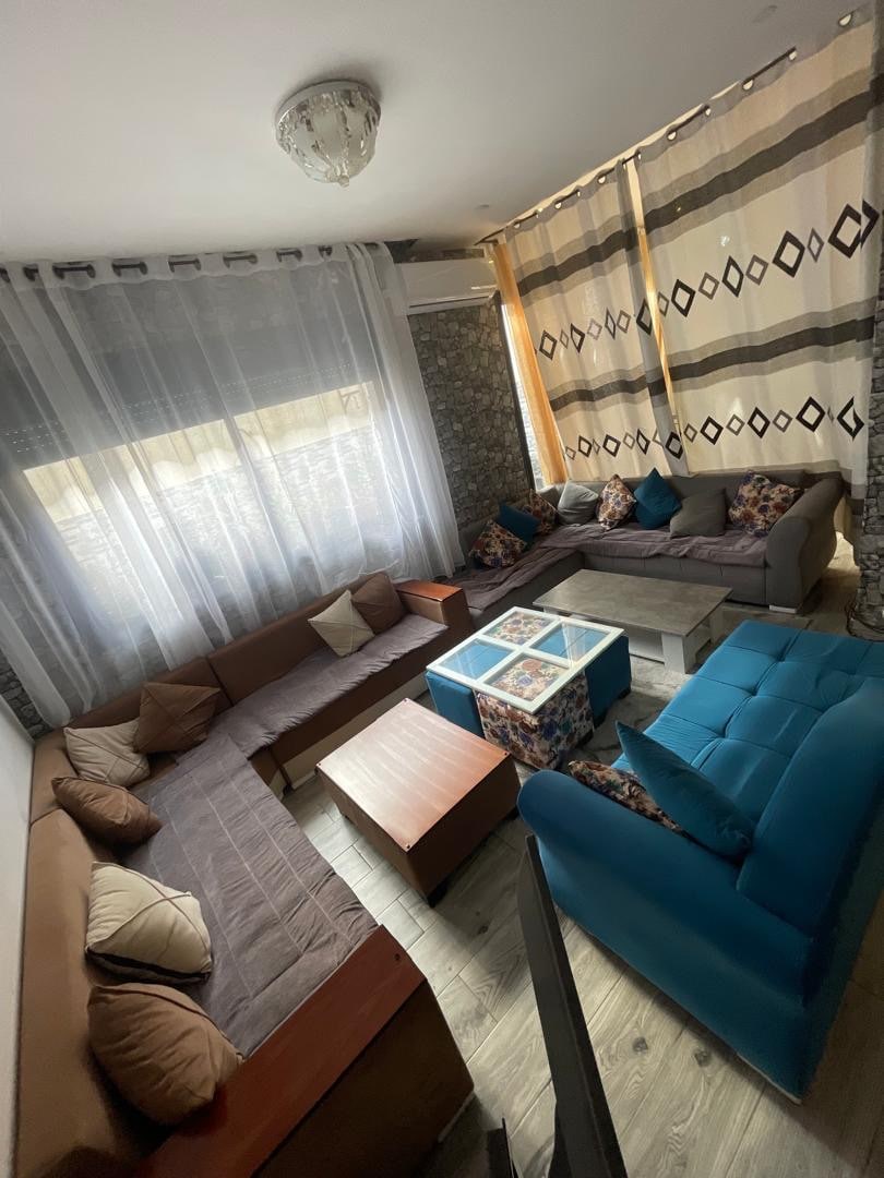 Bo i en exklusiv villa som kombinerar komfort, elegans och förfining: simbassäng 5x4m (1,50m djup), traditionell hamam för dina avkopplande stunder Tre rymliga luftkonditionerade rum med omklädningsrum En stor luftkonditionering som täcker hela bottenvåningen. Ett modernt kök öppet mot en altan med stort 6-personersbord, motoriserad rullgardin och grill. Två badrum med italienska duschar. Du kommer att bli tillfrågad om 5000 dinarer med städavgifter vid utgången
