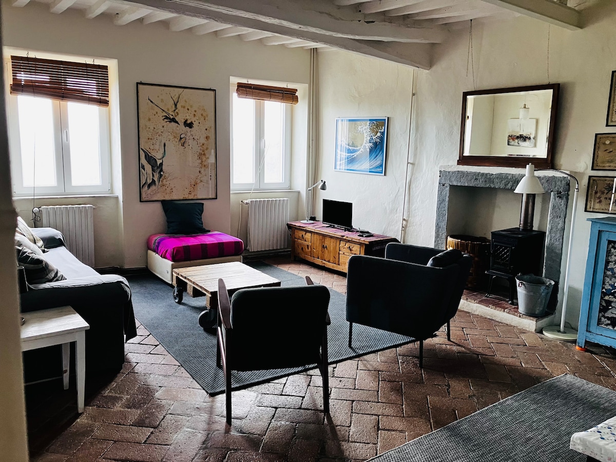 Det typiska toskanska lanthuset, boende upp till 6 gäster. Bo i självhushåll, 15 minuter med bil från Lucca. Hisnande utsikt över Lucca, havet och de apuanska alperna. Perfekt för dem som letar efter natur, besöker Lucca, vandrar och tillbringar dagar vid havet i Versilia. Perfekt för dig som älskar enkelhet och vild landsbygd. Gården är en del av en historisk egendom från 1400-talet. De nya ägarna väcker gradvis sin vision till liv i andra delar av fastigheten.