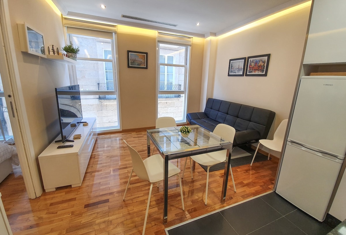 Ny lägenhet underbart inredd och utrustad med alla faciliteter. Din vistelse kommer att vara perfekt och du kommer att känna dig som hemma. David och jag kommer att välkomna dig och kommer att göra allt du behöver under ditt besök. Vi önskar dig njuta av vår vackra och fridfulla stad. Välkommen till Ourense.