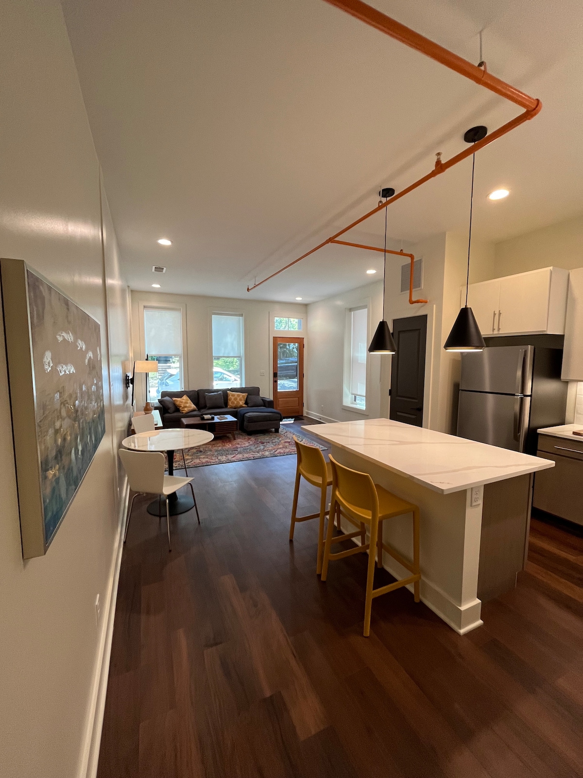 Bo i hjärtat av NULU – denna moderna lägenhet på bottenvåningen ligger bara några steg från Louisvilles bästa restauranger, bourbonstopp och lokala butiker. Promenera till favoriter som Angel's Envy och Rabbit Hole Distillery, njut av alla NuLu-måltider eller bege dig till centrum på några minuter för konserter, spel eller evenemang. Lägenheten är bekväm, tyst och genomtänkt inredd – perfekt för par, ensamma resenärer eller affärsresor, med inhägnad parkering, snabbt Wi-Fi och allt som behövs för kortare eller längre vistelser.
