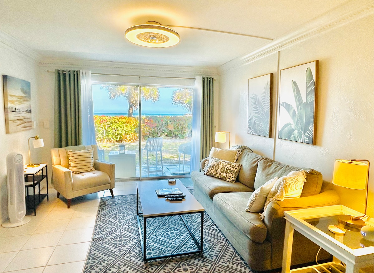 Välkommen till LuxuryinCocoaBeach! Du snubblade över den. Perfekt strandlägenhet. Fantastisk direkt havsutsikt, steg till varm sand, uppvärmd pool och blixtsnabbt Wi-Fi väntar din familj. - 2 rymliga sovrum • rymmer 4 i total komfort - Privat balkong för kaffe vid soluppgången och utsikt hela dagen - Resortpool och GRATIS strandutrustning - Smart-TV, premiumkabel, fri parkering Boka dina önskade datum nu och vakna till ljudet av vågor! Obs: Gemenskapspoolen kommer att vara stängd till den 10 december 2025.