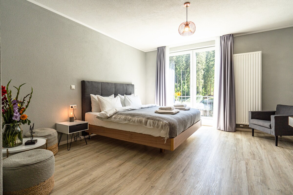 Detta eleganta ställe är perfekt för 2-3 personer Vår Superior Suite nr 10 på vinden med en Massagestol 🛋️ Har en mycket romantisk och mysig känsla, Den kombinerar en modern och tidlös livsstil, som förbinder och glädjer både unga och gamla. Det finns 2️⃣ TV-apparater 🖥️ i vardagsrummet och sovrummet Utsikten över staden Bad Liebenzell och slottet, som ligger mittemot, kan ses från lägenheten samt från balkongen!