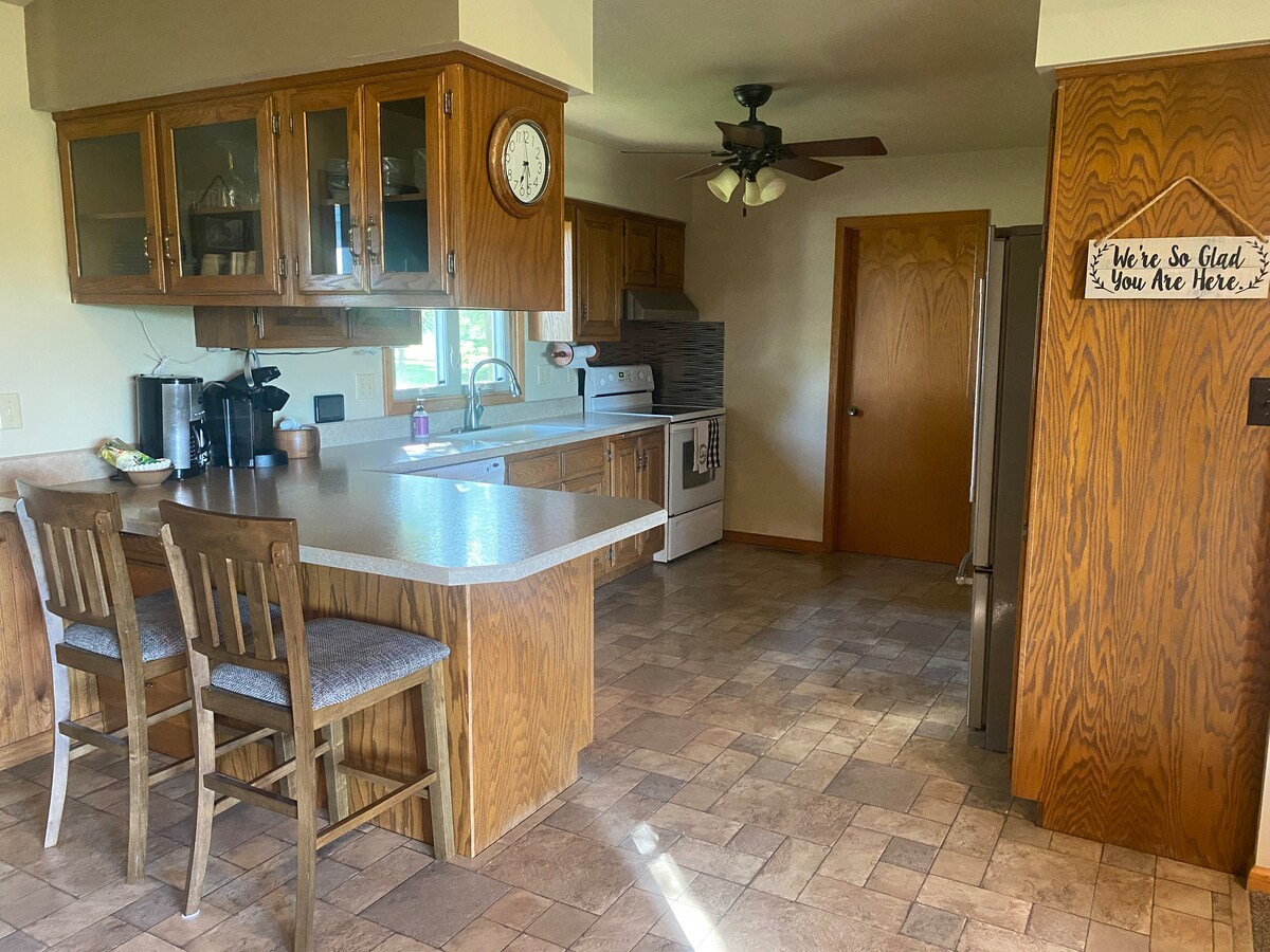 Vacker utsikt och stor bakgård i ett mycket lugnt område gör detta boende till ett bra ställe att bo på medan du besöker Ortonville/Big Stone Lake. Boendet får sitt namn från de besökande grupper av kalkoner vi ofta ser på bakgården. Detta boende erbjuder 3 sovrum och 1 badrum och rymmer bekvämt 7 gäster. Det finns parkering utanför gatan, utomhusuttag och ett fiske- och viltrengöringsutrymme i garaget (Vi ber dig att ta med dig dina fisk-/viltrester med dig för bortskaffande).