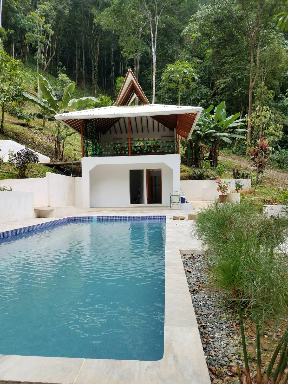 Välkommen till Mountain House på The Sutton. Detta är ett av tre boutique-stil boenden inom fastigheten. Boendet är omgiven av djungeln och all dess härliga natur. Hyr en för dig och den där speciella personen eller alla tre för en gruppvilla upplevelse med bekvämligheten av privata boenden. Varje enhet har en egen täckt uteplats utrustad med ett pentry för en avkopplande frukost på sängen på morgonen. Fastigheten delar en rancho perfekt för gemensam måltidsberedning och matlagning med utsikt över poolen, soldäcket och den tropiska trädgården.