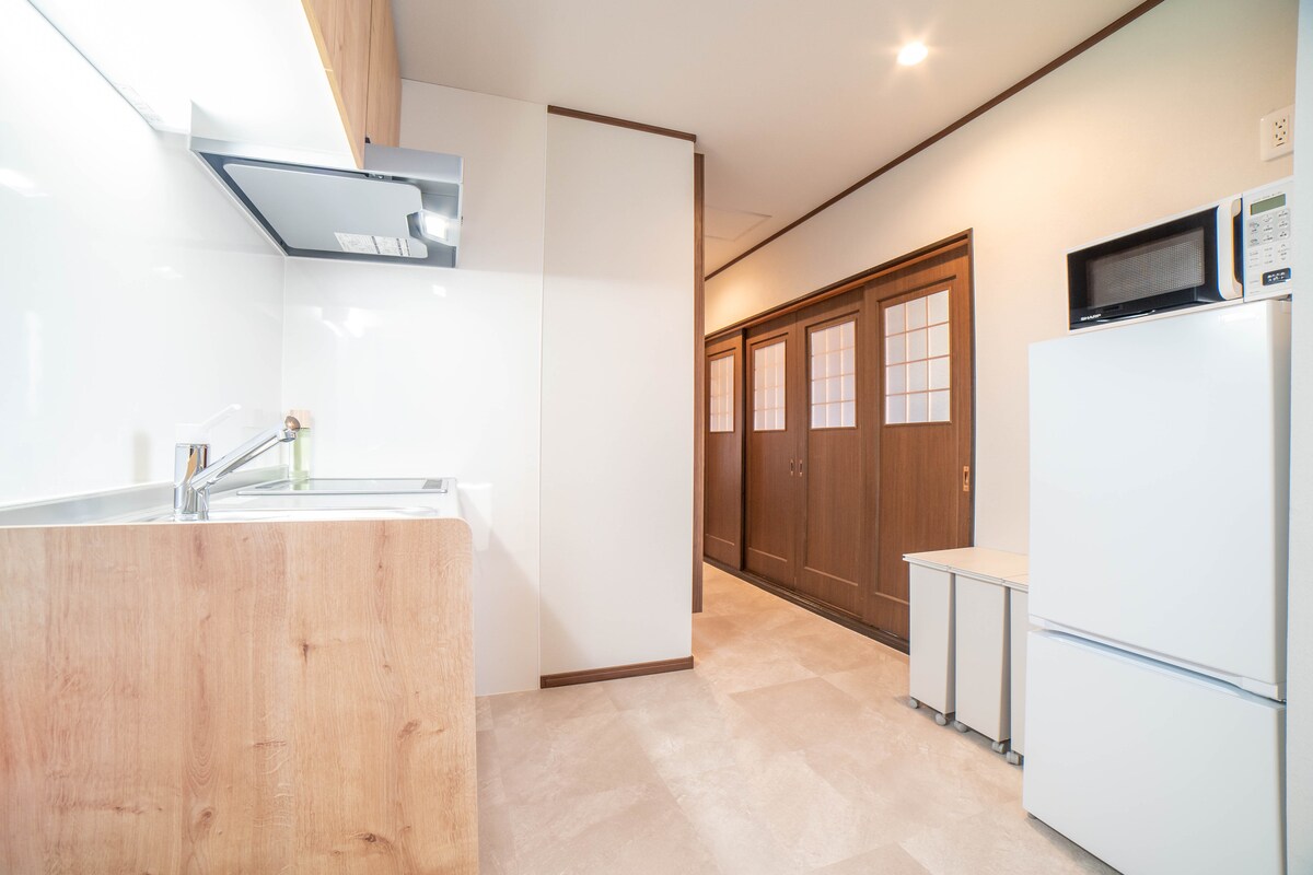 Ett gästhus med den coolaste bardisken. Alla utrymmen är reserverade. En 2-minuters promenad från stationen, bredvid FamilyMart. Ta en drink på caféet med en soffa och en dubbelsäng. Du kan njuta av filmer, Netflix, youtube och musik genom att ansluta den till en dator med en projektor och en HDMI-kabel. En stor TV och pärlkuddar för en elegant matsal med kök och ett avkopplande vardagsrum. Sovrummet är utrustat med en dubbelsäng. Det finns också en gasfläktvärmare, så det är varmt på vintern.